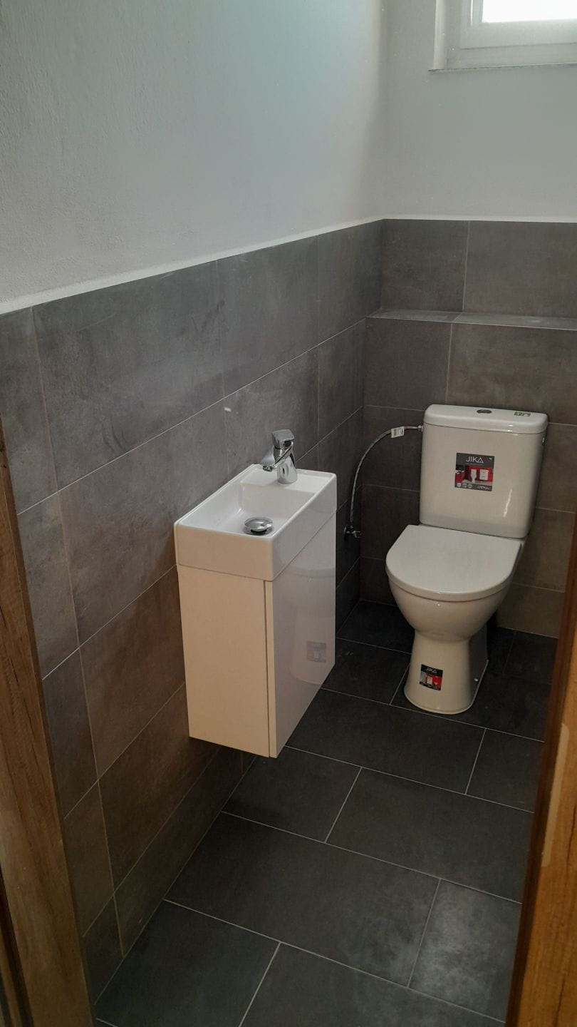 Rekonstrukce koupelny, WC a kuchyně v rodinném domě s novým rozvodem odpadů, vody a částečnou úpravou elektroinstalace.